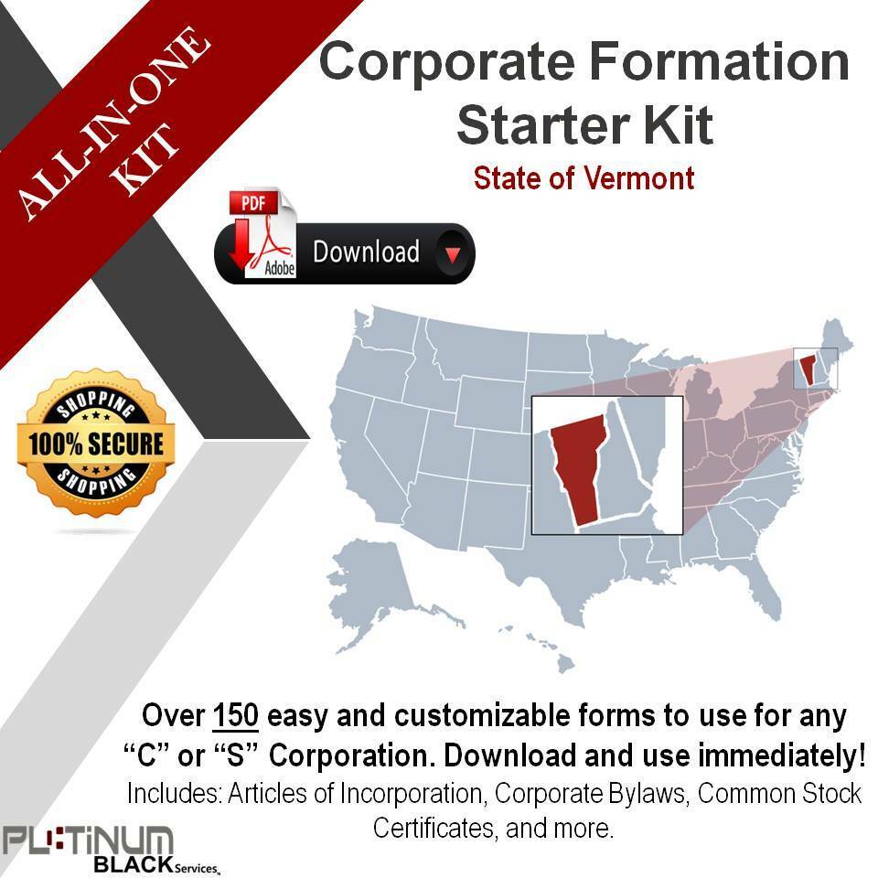 Corporate Formation Starter Kit for the State of Vermont by Platinum Black Services